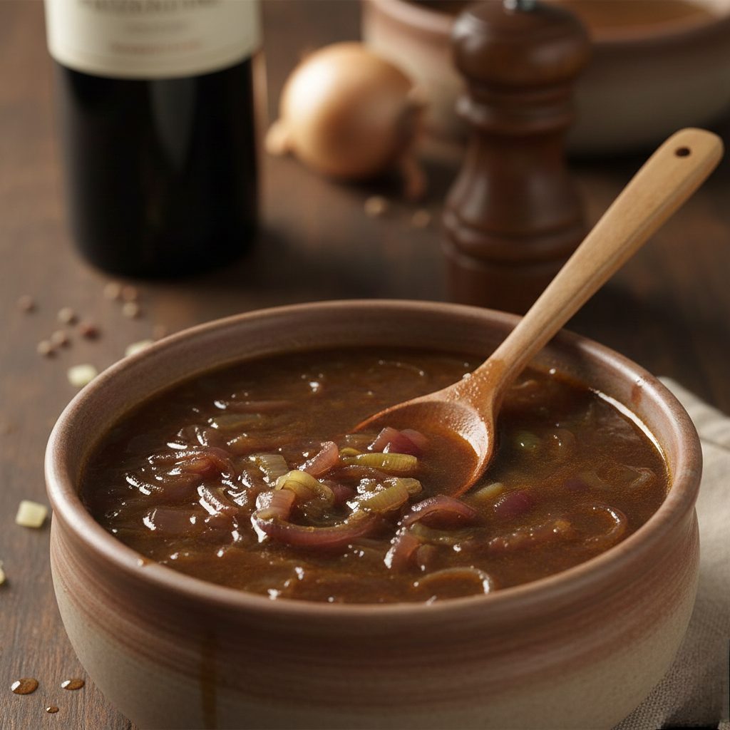 Rabbi Orlofsky notes that this recipe was inspired by a restaurant called "Pellam" and perfected over 40 years of cooking. He emphasizes that this recipe relies purely on onions for flavor and does not use any vegetable, chicken, or meat stock.